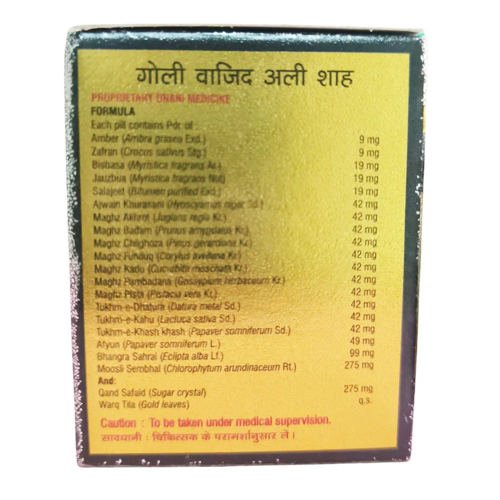 New Shama Goli Wajid Ali Shah is an Unani, herbal preparation for male debilities. It is a unique formulation which gives strength to vital organs and also increases blood supply to male organs. It can be very helpful in premature ejaculation and erectile dysfunction.