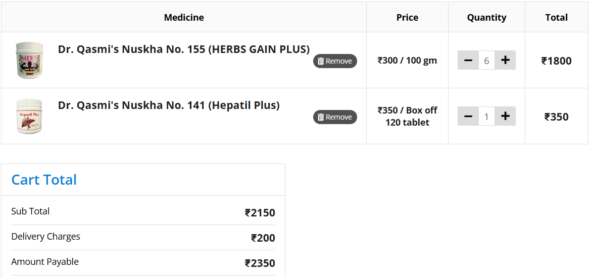 You can easily order Dr. Qasmi's Nuskha No. 141 and Nuskha No. 155 from our pharmacy by visiting https://pharmacy.sairahealthcare.com/medicine/medicines-to-improve-health/255. We ensure fast and reliable delivery so you can start your health journey as soon as possible. For more information on these medicine packages, feel free to explore our website at www.sairahealthcare.com.