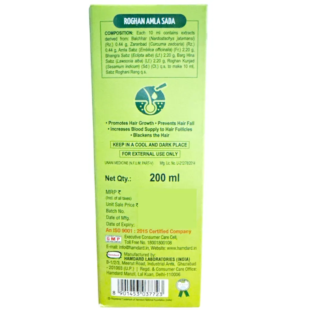 Hamdard Roghan Amla Sada maintains their colour and makes them shine. As well as Roghan Amla Sada strengthens the hair roots and prevents falling of hair. It also helps in promoting hair growth.
