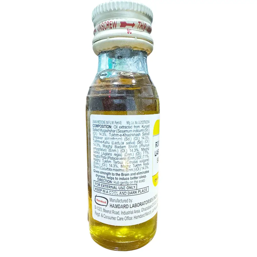 It is used for chronic insomnia, headaches and is an excellent cerebral tonic. Gives strength to the brain and eliminates dryness. Helps to induce better sleep. It is an oil-based Unani medicine. Hamdard Roghan Labub-E-Saba is used for various purposes, including chronic insomnia, and headaches, and as a cerebral tonic to strengthen the brain.
