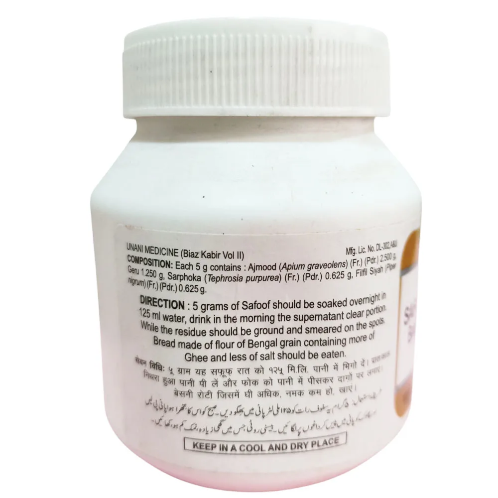 Take 5 grams of Safoof should be soaked overnight in 125ml water, drink in the morning the supermatant clear portion